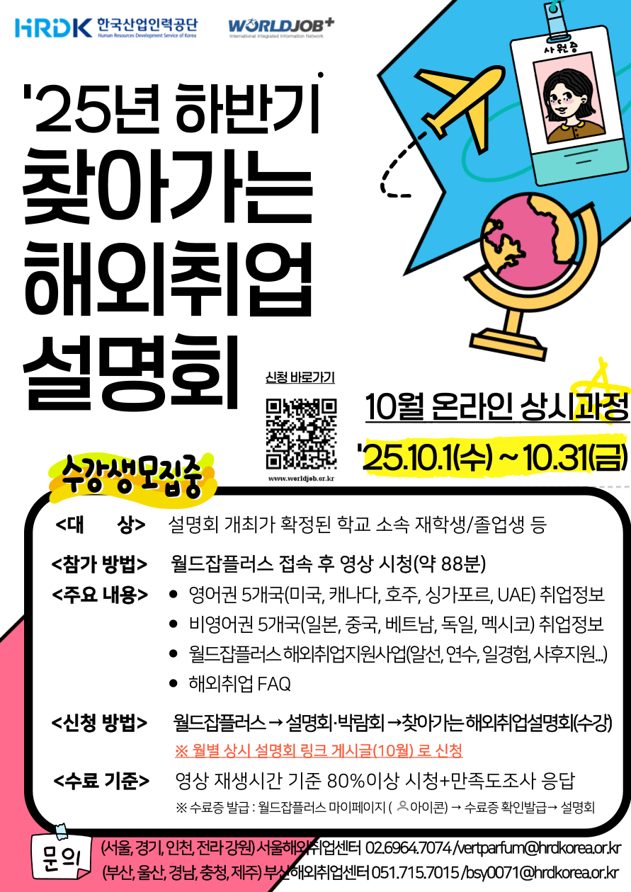 [취업] [학생인재개발팀/대학일자리플러스센터] 2025 하반기 온라인 찾아가는 해외취업 설명회