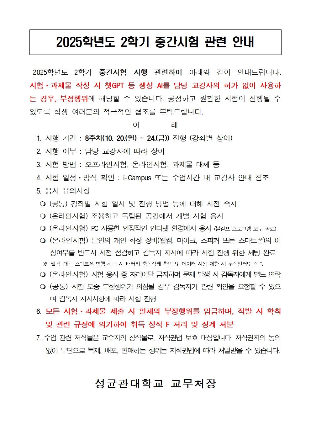 2025학년도 2학기 중간강의평가 시행 안내(10. 20.(월) ~ 10. 31.(금))
