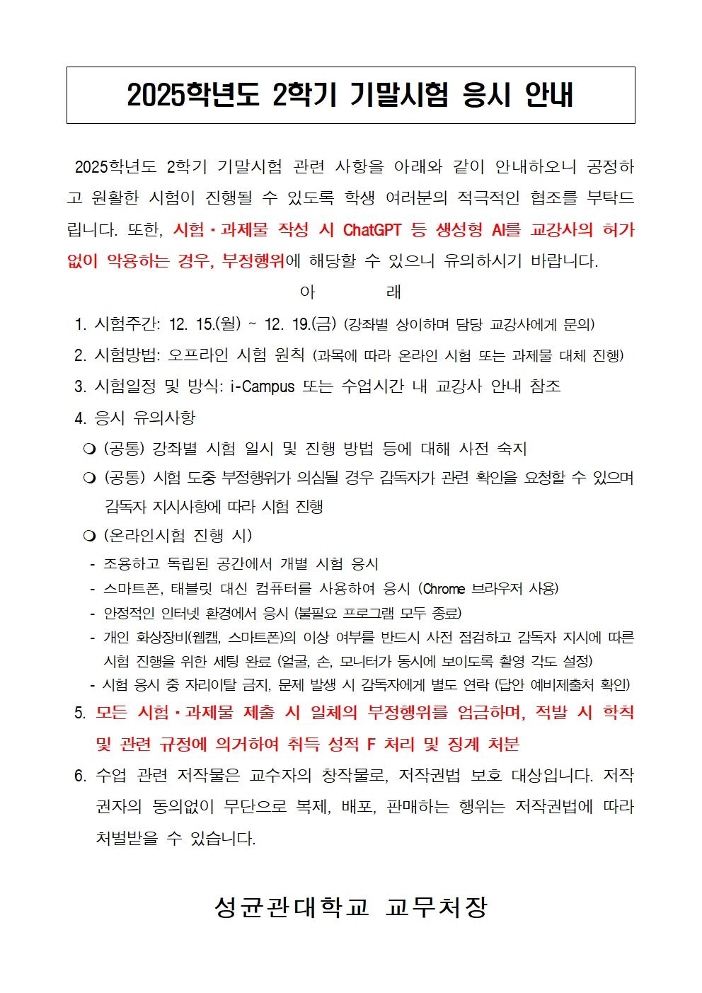 [중요] 2025학년도 2학기 기말시험 응시 안내