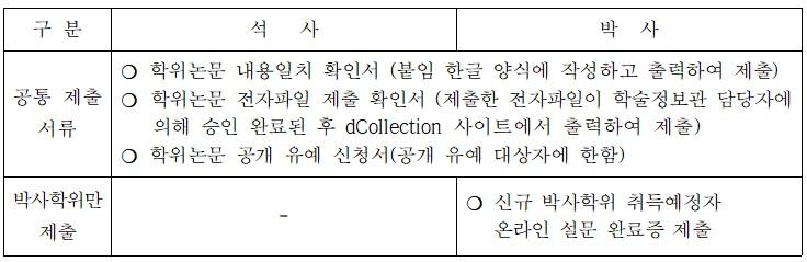 - 제출장소: 소속 대학원 행정실