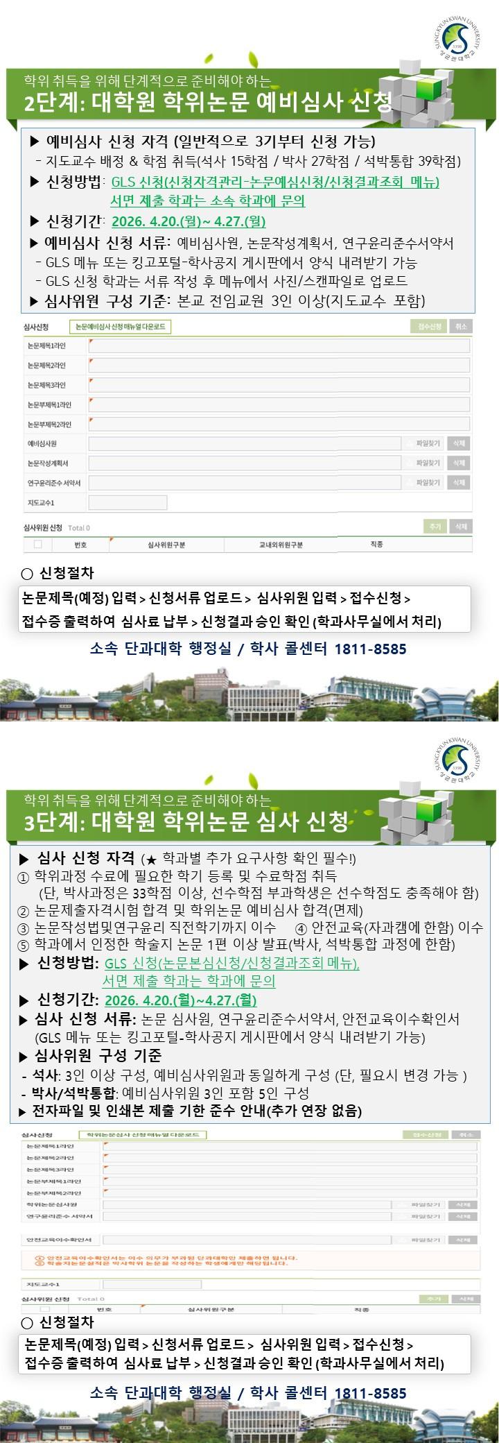 [학사] 2026학년도 1학기 일반대학원 학위논문 예비심사/심사 신청 안내